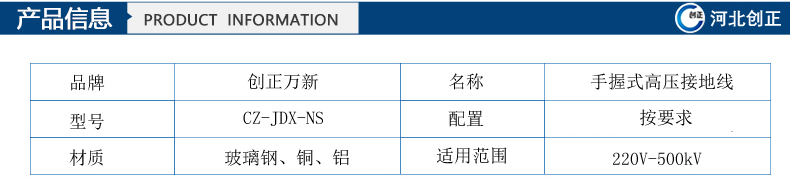 (1)型号:CZ-JDX-NS-6kV手握式高压接地线;