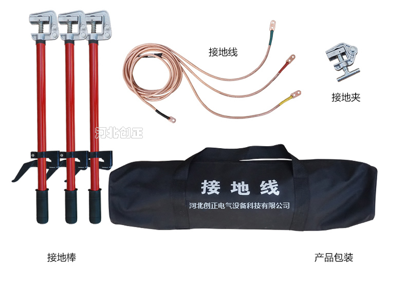 (2)、安装:将接地软铜线和接线端子固定在接地棒上的接电夹的相应位置上,将接地线尾线的接线端子固定在接地夹或地针上,构成一套完整的接地线。