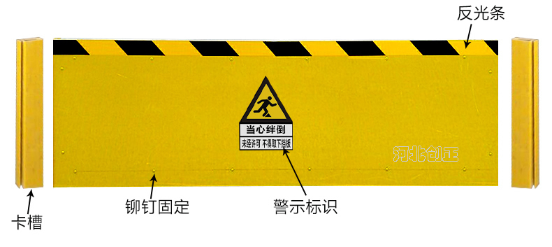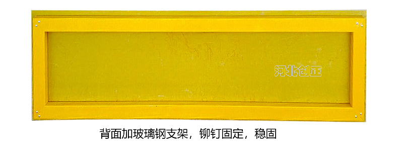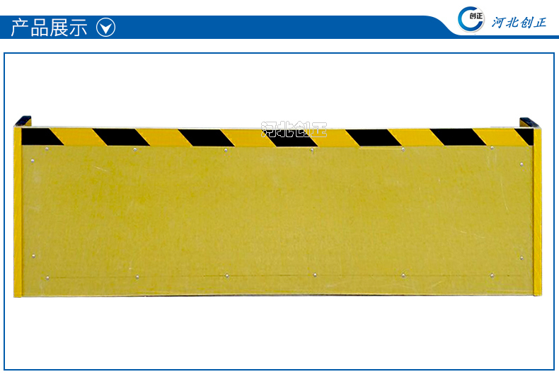玻璃钢绝缘挡鼠板采用玻璃钢板材制做。挡鼠板上部贴黄黑相间反光条,反光条为反光膜加背胶纸制作。